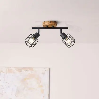 Brilliant Gwen Plafondlamp Metaal Hout Zwart | Geschikt voor 2x E14