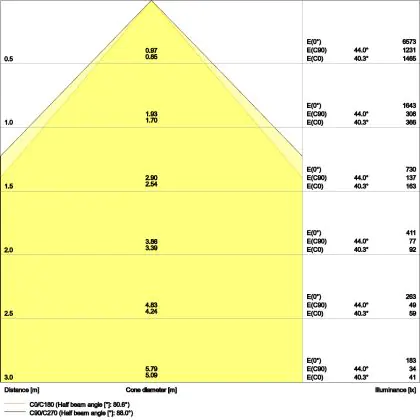 ![]() De kleurcode is een combinatie van de kleurweergave (CRI) en lichtkleur (Kelvin). Het eerste getal is de kleurweergave (1 = zeer slechte kleurweergave, 9 = maximale kleurechtheid). Het tweede en derde cijfer betreft de lichtkleur. Een lamp met kleurcode 830 heeft bijvoorbeeld een goede kleurweergave en straalt een warm wit licht uit (3000K), waar een lamp met de kleurcode 940 een uitstekende CRI heeft en een koel wit licht (4000K) uitstraalt. |