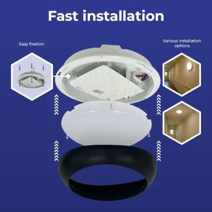 Noxion LED Bulkhead Pro V2 12/16/20W 2400lm - 830-840-865 CCT | 325mm - IP65 - 3 Uur Noodverlichting + Ring Zwart
