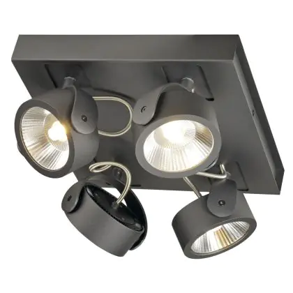 SLV Kalu Quadruple Wand en Plafondlamp Aluminium Zwart Vierkant 60W 4000lm - 830 Warm Wit | Dimbaar